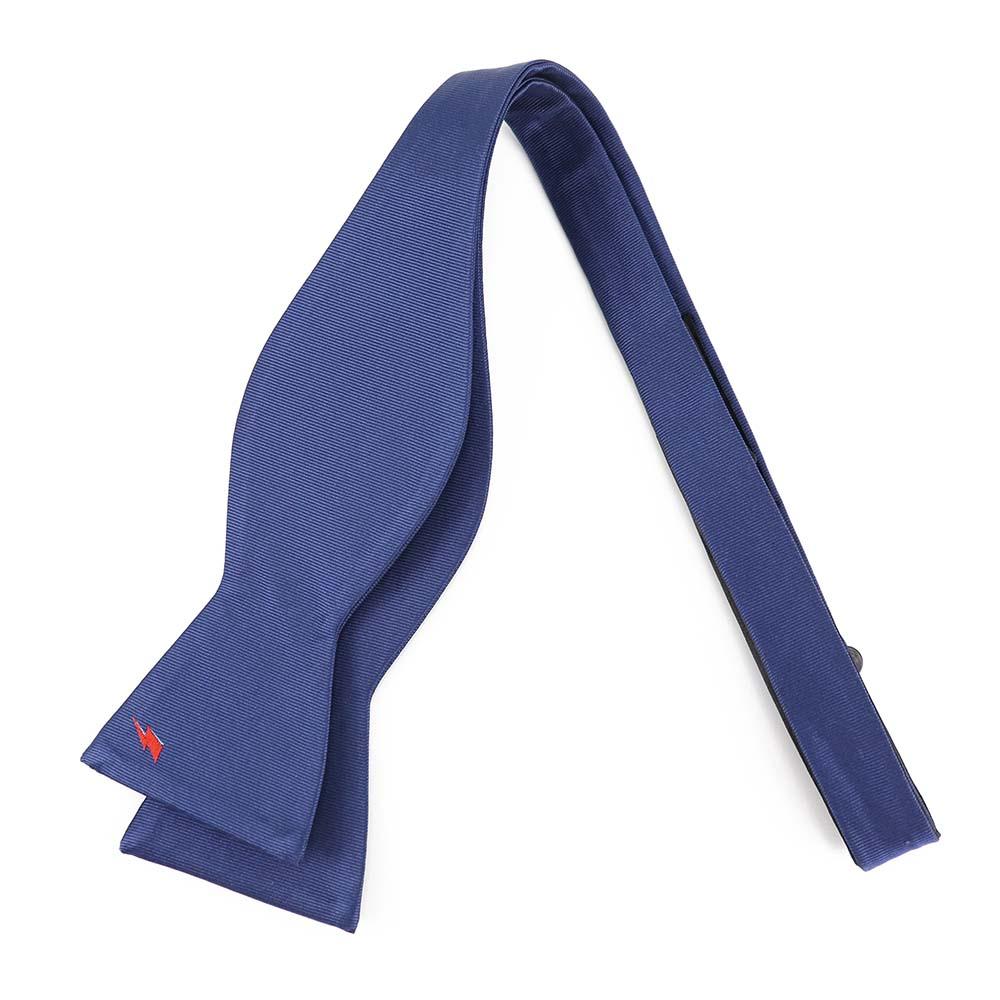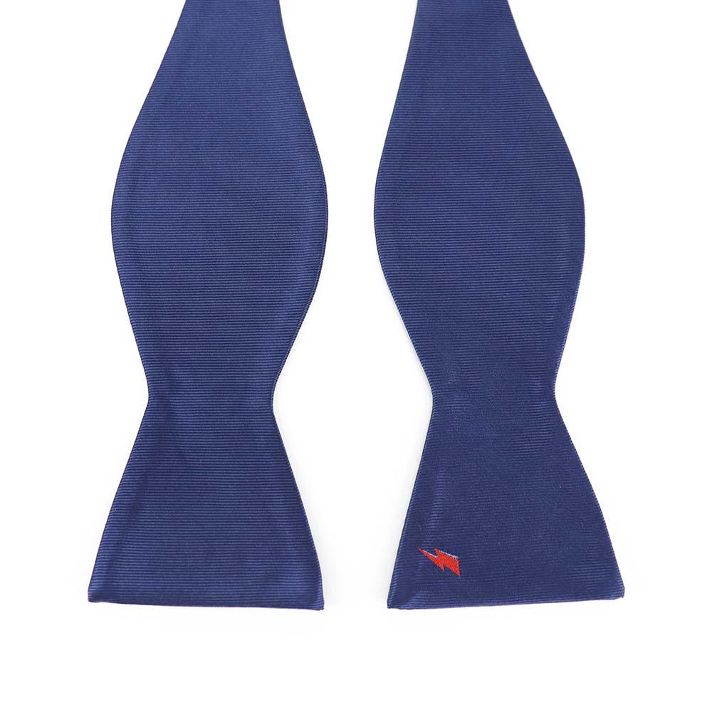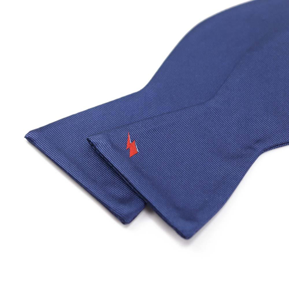 The David Bowie Navy Bolt Bow Tie (Self-Tied) is hand-cut and hand-sewn from 100% 16 momme twill silk fabric, which is considered to be the best in the industry.