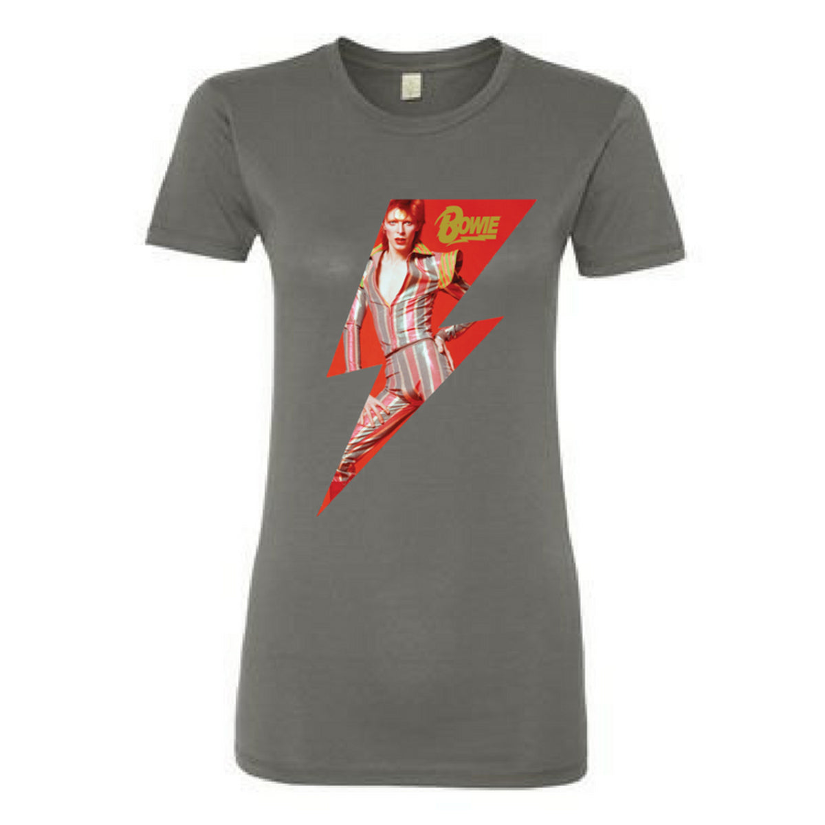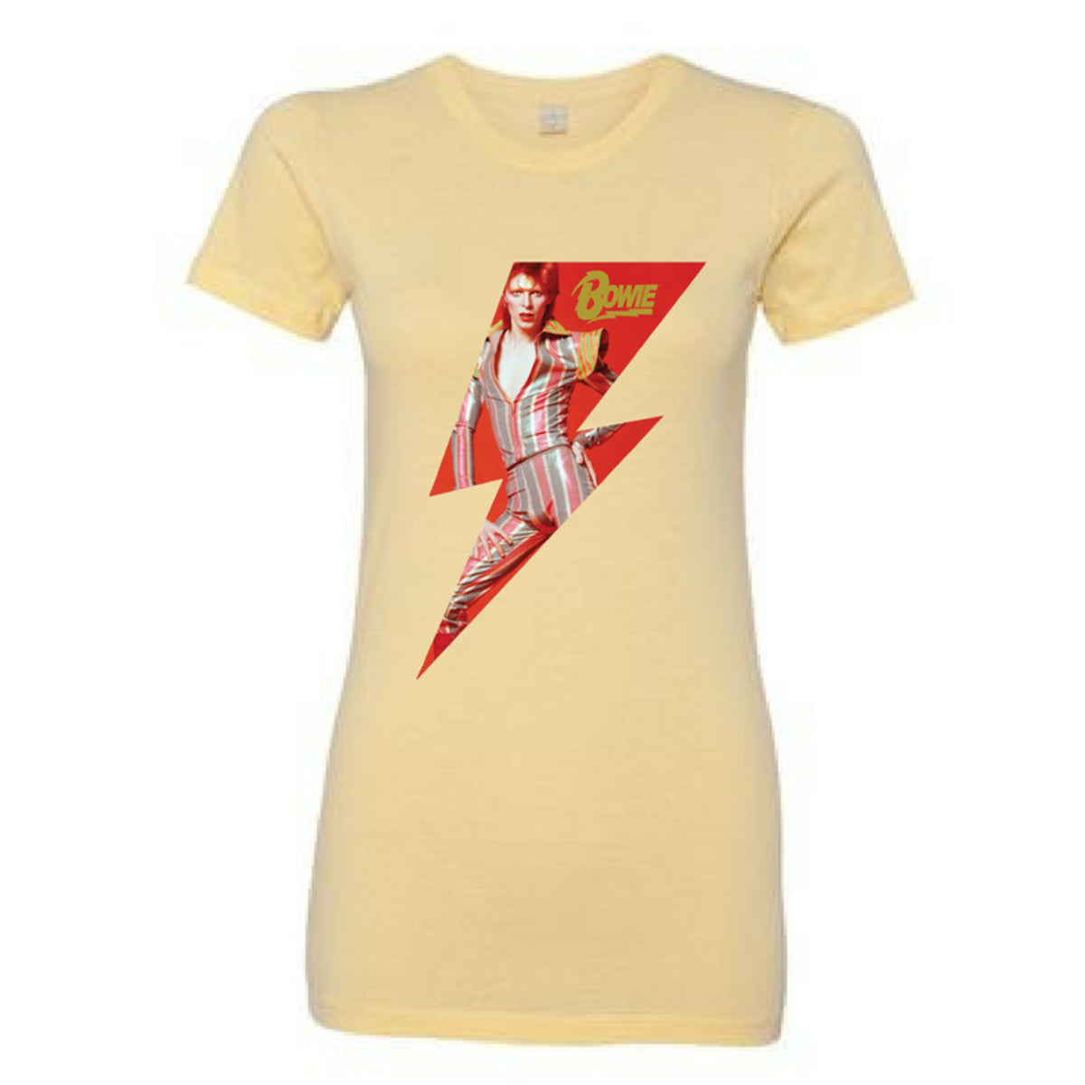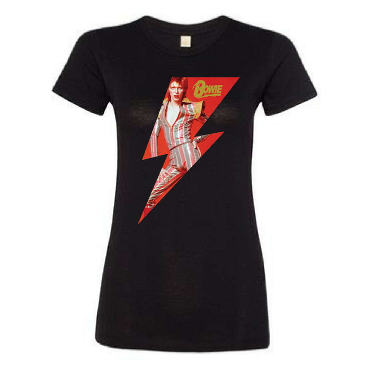 A bright bolt and a beaming androgynous Bowie adorn this simple, clean tee. This is a print-on-demand item. Please allow two additional days for order processing. POD item are non-returnable and exchanges will not be accepted except in the case of defective merchandise.